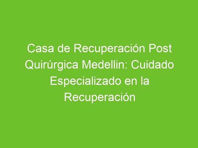 R: La Casa de Recuperación Post Quirúrgica en Medellín ofrece cuidado especializado en la recuperación de pacientes que han sido sometidos a intervenciones quirúrgicas, proporcionando servicios como alimentación balanceada, atención médica personalizada y terapias de rehabilitación.