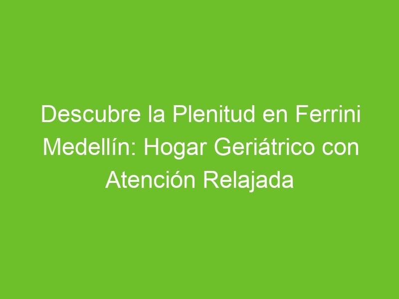 En el corazón de Medellín, se encuentra un hogar geriátrico que va más allá de ofrecer cuidados básicos, brindando una atención especializada y relajada que busca el bienestar integral de sus residentes. Descubre la plenitud en Ferrini Medellín, un espacio que cuida cada detalle para hacer de la vejez una etapa llena de confort y alegría. En este artículo, exploraremos las características únicas de este hogar geriátrico y la filosofía que lo distingue en el cuidado de la tercera edad. ¡Bienvenidos a un lugar donde la calidez y la profesionalidad se unen para crear un ambiente hogareño y acogedor!