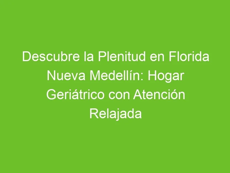 En Florida Nueva Medellín, nos comprometemos a proporcionar una atención relajada y personalizada, donde nuestros residentes puedan disfrutar de una vida plena y feliz en un entorno seguro y confortable. ¡Descubre la plenitud en nuestro hogar geriátrico!
