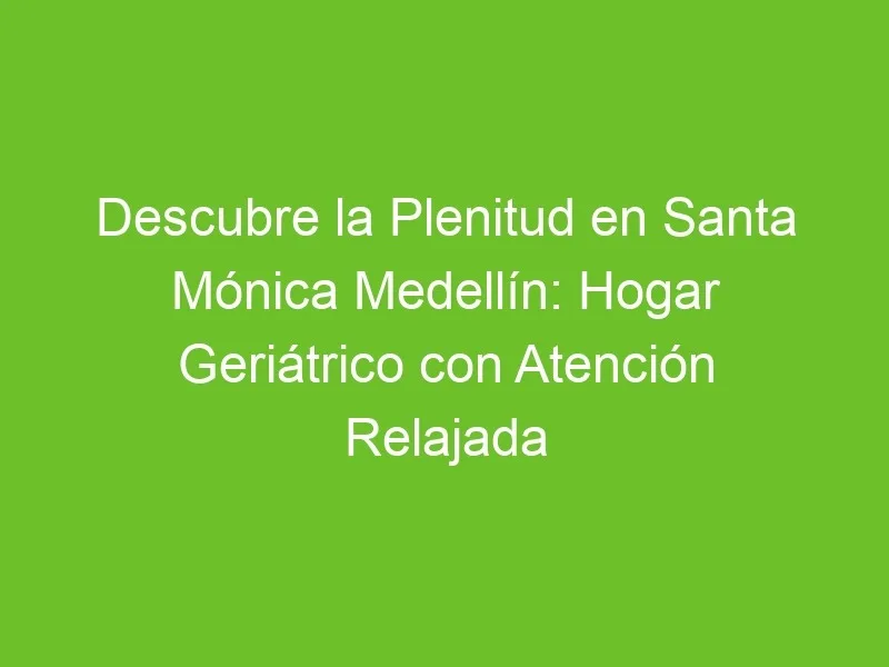 Descubre la Plenitud en Santa Mónica Medellín: Hogar Geriátrico con Atención Relajada
