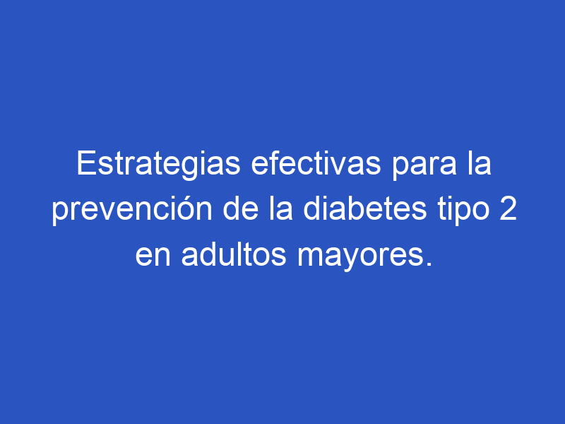 P: ¿Cuáles son algunas estrategias efectivas para la prevención de la diabetes tipo 2 en adultos mayores?