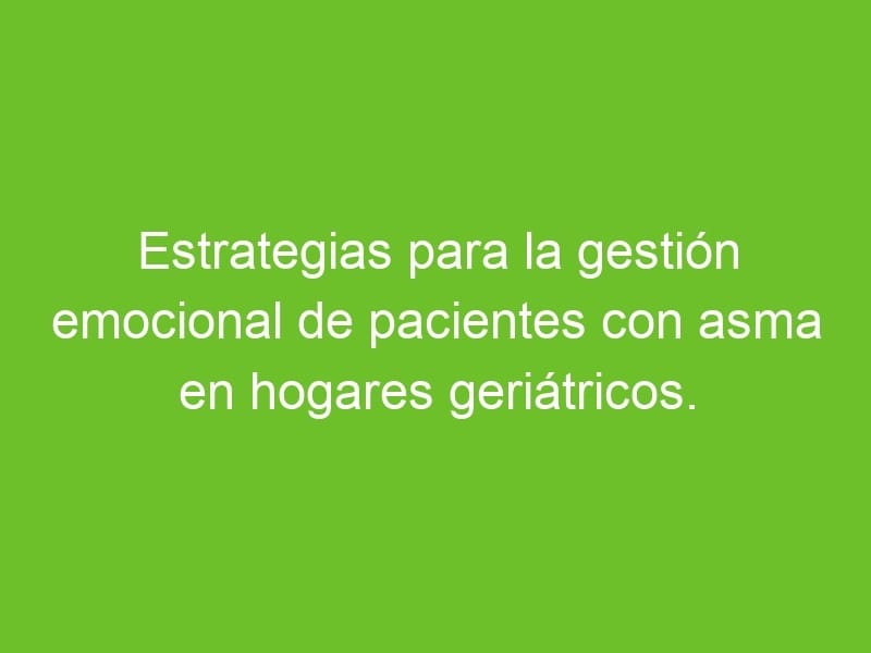 En resumen, la gestión emocional de pacientes con asma en hogares geriátricos es fundamental para garantizar su bienestar y calidad de vida. Mediante la aplicación de diversas estrategias, podemos ayudar a estos pacientes a controlar sus emociones y mejorar su salud respiratoria. Desde la educación y la comunicación hasta la terapia y el apoyo emocional, cada herramienta que utilizamos puede marcar la diferencia en la vida de quienes padecen esta enfermedad. Mantener una actitud positiva y proactiva, así como trabajar en equipo con el personal médico y de enfermería, nos permite brindar una atención integral y efectiva a nuestros residentes.¡Sigamos trabajando juntos para cuidar de aquellos que más nos necesitan!