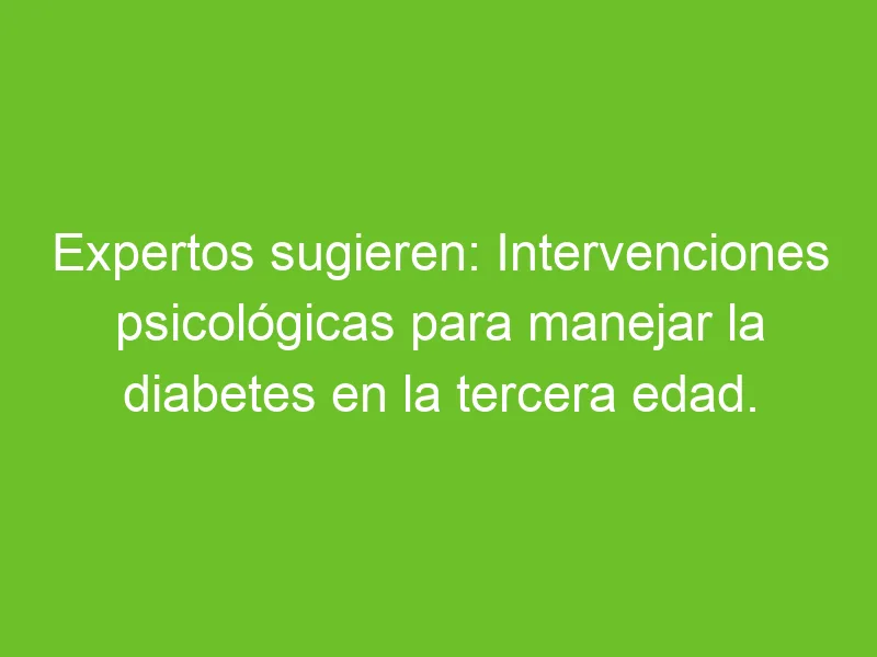 Según expertos en el manejo de la diabetes en la tercera edad, las intervenciones psicológicas juegan un papel fundamental en el control de esta enfermedad crónica. A continuación, se presentan algunas estrategias sugeridas por profesionales de la salud:
