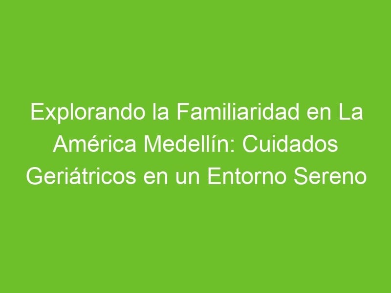 R: «Explorando la Familiaridad en La América Medellín: Cuidados Geriátricos en un Entorno Sereno» es un artículo que destaca la importancia de brindar cuidados geriátricos en un ambiente tranquilo y familiar en la ciudad de Medellín.