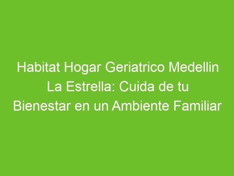 En la tranquila localidad de La Estrella, en Medellín, se encuentra un refugio acogedor que se destaca por cuidar del bienestar de sus residentes en un ambiente familiar y cálido. Habitat Hogar Geriátrico Medellín La Estrella es mucho más que un centro de atención para adultos mayores; es un hogar donde la calidad de vida y el cuidado personalizado son prioridades absolutas. Descubre cómo este establecimiento único está cambiando la forma en que se brinda atención a nuestros seres queridos en sus años dorados.