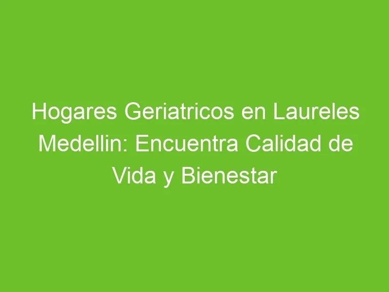 En la vibrante ciudad de Medellín, los hogares geriátricos en Laureles ofrecen a los adultos mayores la oportunidad de disfrutar de una vida plena, llena de calidad y bienestar. En este artículo, exploraremos las diversas opciones que existen en esta zona para aquellos que buscan un lugar seguro y acogedor para sus seres queridos en su etapa dorada. ¡Descubre cómo estos hogares geriátricos pueden ser el hogar ideal para aquellos que buscan una vida saludable, feliz y plena en Medellín!