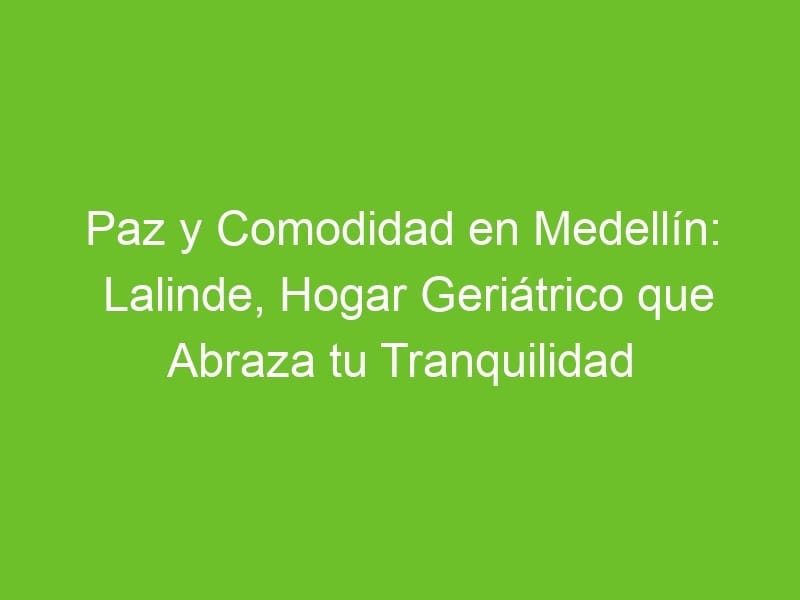 En el corazón de la ⁤vibrante ciudad de Medellín, se encuentra un refugio de paz y comodidad para⁤ aquellos que​ buscan un ambiente ​tranquilo y acogedor en sus años dorados.⁤ Lalinde, Hogar Geriátrico, es más que una​ residencia⁣ de‍ ancianos; es ⁣un oasis de serenidad que abraza la ⁤tranquilidad de sus residentes con cariño y dedicación. En este artículo, exploraremos cómo⁢ este ⁣hogar geriátrico único ofrece un ambiente de cuidado y ​confort ​incomparables en la hermosa⁤ ciudad ⁢de la eterna primavera.