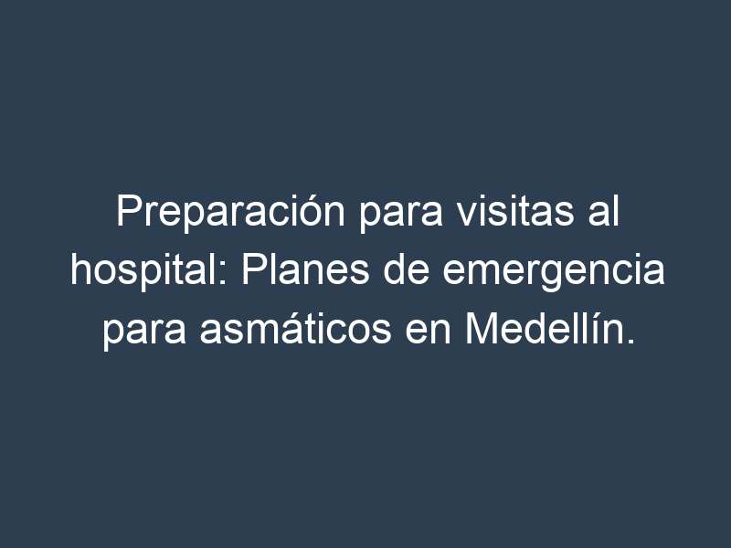 En resumen, la preparación para visitas al hospital y la creación de planes de emergencia son fundamentales para garantizar la seguridad y el bienestar de los asmáticos en Medellín. Es importante estar preparado y conocer los pasos a seguir en caso de una crisis asmática. Recuerda siempre mantener tu medicación al día, comunicar tus necesidades al personal médico y tener a mano tu plan de emergencia. ¡Tu salud es lo más importante! ¡No dejes de prepararte y tomar las medidas necesarias para mantenerla bajo control! ¡Juntos podemos lograrlo! ¡Gracias por leer!