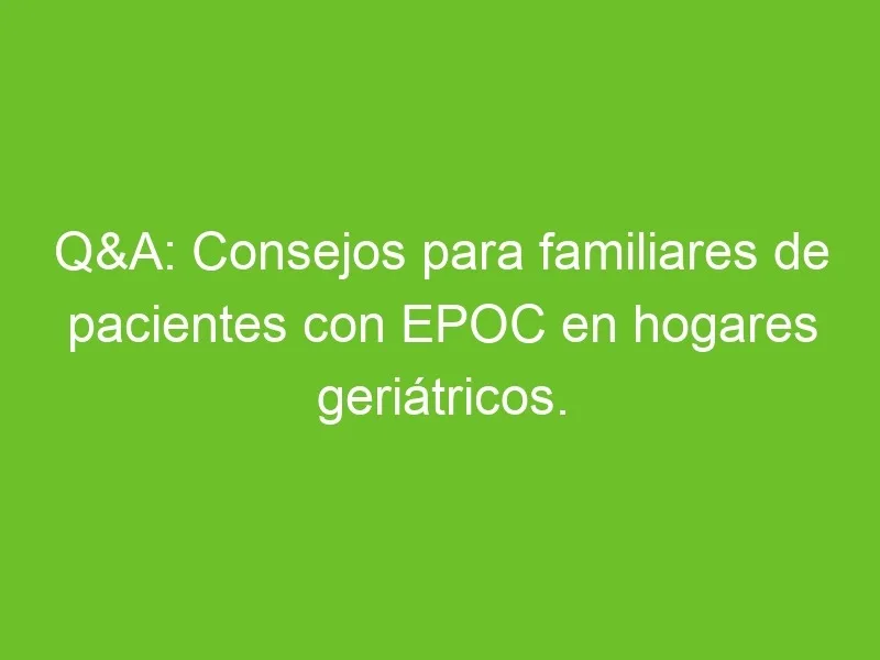 En este Q&A, vamos a discutir algunos consejos para familiares de pacientes con EPOC que se encuentran en hogares geriátricos. Es importante tener en cuenta que la calidad de vida de estos pacientes puede mejorar significativamente con el apoyo adecuado de sus seres queridos.