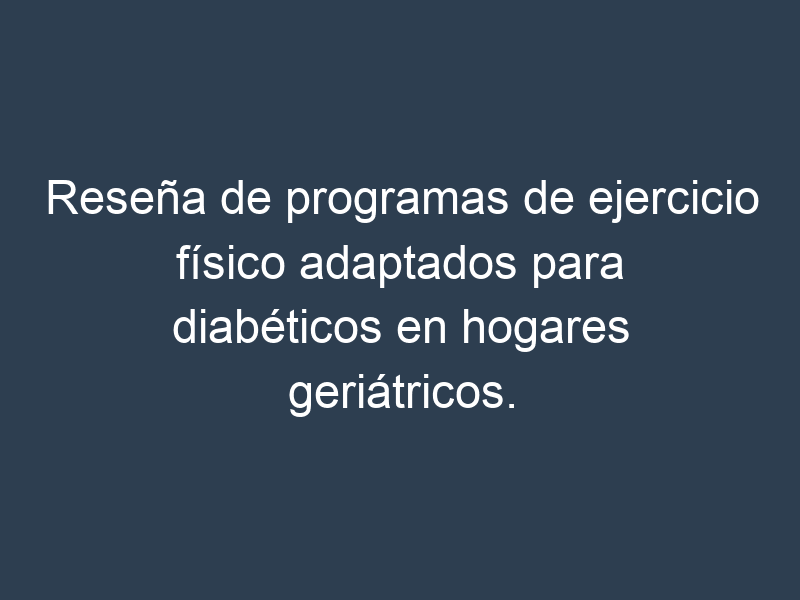 R: Se recomienda consultar con especialistas en diabetes, fisioterapeutas y educadores en salud para obtener información detallada y personalizada sobre programas de ejercicio físico adaptado para diabéticos en hogares geriátricos.