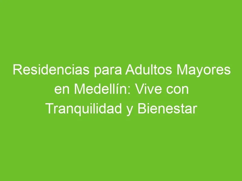 En la vibrante ciudad de Medellín, las residencias para adultos mayores ofrecen un oasis de tranquilidad y bienestar para aquellos que buscan un lugar donde vivir con comodidad y dignidad en sus años dorados. En este artículo, exploraremos las diversas opciones disponibles en la ciudad y cómo estas residencias pueden brindar a los residentes una vida plena y satisfactoria. ¡Descubre cómo puedes disfrutar de una vida plena en Medellín!