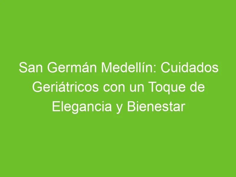 En la encantadora ciudad de Medellín, encontramos un lugar donde el cuidado geriátrico se fusiona con la elegancia y el bienestar, creando un ambiente único y acogedor para nuestros seres queridos de la tercera edad. San Germán Medellín es el oasis ideal para aquellos que buscan atención especializada con un toque de sofisticación. En este artículo, exploraremos cómo este centro se destaca por ofrecer servicios de alta calidad en un entorno que promueve la felicidad y el bienestar de sus residentes. ¡Bienvenidos a San Germán Medellín, donde la excelencia y la elegancia se encuentran!