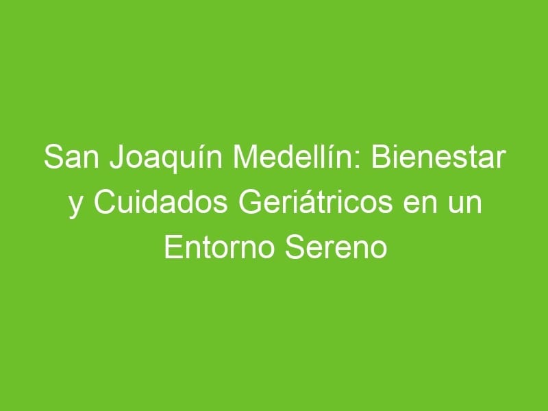 En el corazón de la vibrante ciudad de Medellín se encuentra un oasis de tranquilidad y bienestar para adultos mayores: San Joaquín Medellín. Este centro de cuidados geriátricos ofrece un entorno sereno y acogedor, donde nuestros residentes pueden disfrutar de una atención personalizada y de alta calidad. Descubre cómo San Joaquín Medellín se ha convertido en un referente de cuidados geriátricos en Colombia y cómo estamos comprometidos con el bienestar y la felicidad de nuestros residentes.