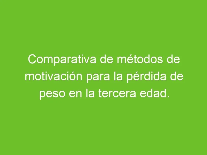 En la búsqueda constante por alcanzar un peso saludable, la tercera edad se presenta como un desafío único que requiere de enfoques de motivación específicos. En este artículo, exploraremos y compararemos diversos métodos de motivación para la pérdida de peso en la tercera edad, con el objetivo de ofrecer herramientas efectivas y personalizadas para alcanzar este importante objetivo de salud. ¡Descubramos juntos el camino hacia una vida más activa y saludable en la tercera edad!