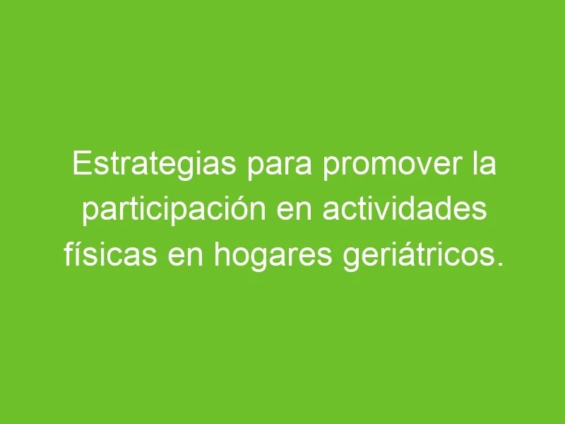 Para promover la participación en actividades físicas en hogares geriátricos, es fundamental implementar estrategias efectivas que motiven a los residentes a mantenerse activos y saludables. A continuación, se presentan algunas recomendaciones para lograr este objetivo: