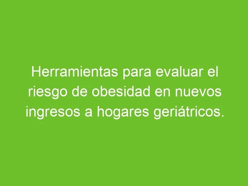 Existen diversas que pueden ser de gran utilidad al momento de recibir a nuevos ingresos en hogares geriátricos. Estas herramientas permiten identificar de manera temprana a aquellos adultos mayores que pueden presentar un mayor riesgo de obesidad, lo que facilita la implementación de medidas preventivas y de control adecuadas.