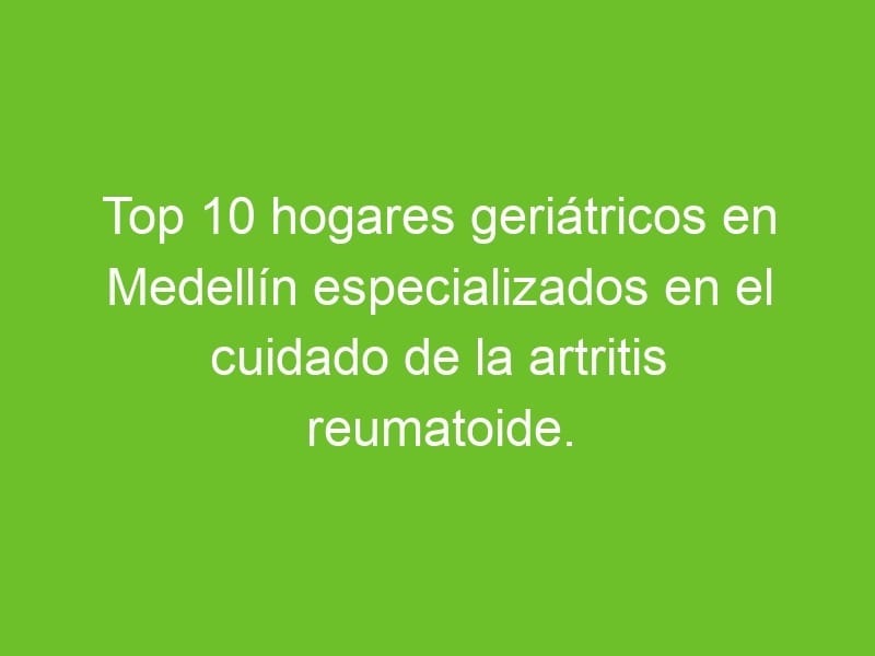 En resumen, Medellín cuenta con una variedad de hogares geriátricos especializados en el cuidado de la artritis reumatoide que ofrecen servicios excepcionales para aquellos que padecen esta enfermedad. Desde terapias específicas hasta un ambiente acogedor y profesional, estos hogares están enfocados en brindar la mejor atención para mejorar la calidad de vida de sus residentes. No dudes en consultar nuestra lista de los 10 mejores hogares geriátricos en la ciudad para encontrar la opción perfecta para tus seres queridos. La artritis reumatoide no tiene que limitar la vida de quienes la padecen, y estos hogares están aquí para demostrarlo. ¡Tu tranquilidad y bienestar son nuestra prioridad! ¡No esperes más y encuentra el hogar perfecto para tus necesidades!