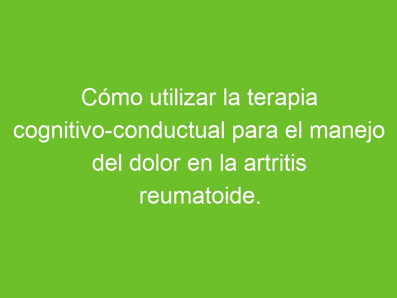La artritis reumatoide es una enfermedad crónica que afecta a millones de personas en todo el mundo, causando dolor e inflamación en las articulaciones. Para muchos pacientes, el dolor puede ser debilitante y dificultar su calidad de vida. En este artículo, exploraremos cómo la terapia cognitivo-conductual puede ser una herramienta eficaz en el manejo del dolor en la artritis reumatoide. Acompáñanos en este viaje hacia una mejor comprensión y control de esta enfermedad tan desafiante.