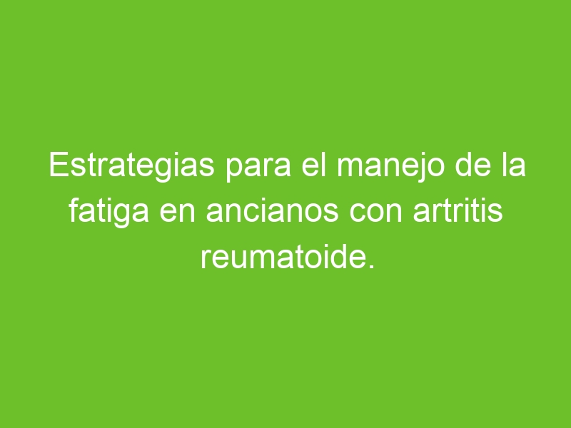 En la vibrante danza de la vida, la fatiga se erige como un intrépido contrincante que desafía la vitalidad de los ancianos con artritis reumatoide. En este delicado escenario, es imperativo desentrañar estrategias eficaces para manejar esta acompañante indeseada y permitir que la belleza de la existencia siga brillando con destello inquebrantable. A través del arte y la ciencia, exploraremos cómo encarar con sabiduría la fatiga en este particular grupo poblacional y abrir camino hacia una vida plena y sostenida en armonía con la artritis reumatoide. Un viaje hacia el bienestar físico y emocional que merecen nuestros venerables guerreros de la edad dorada. ¡Bienvenidos a este fascinante viaje de descubrimiento y esperanza!