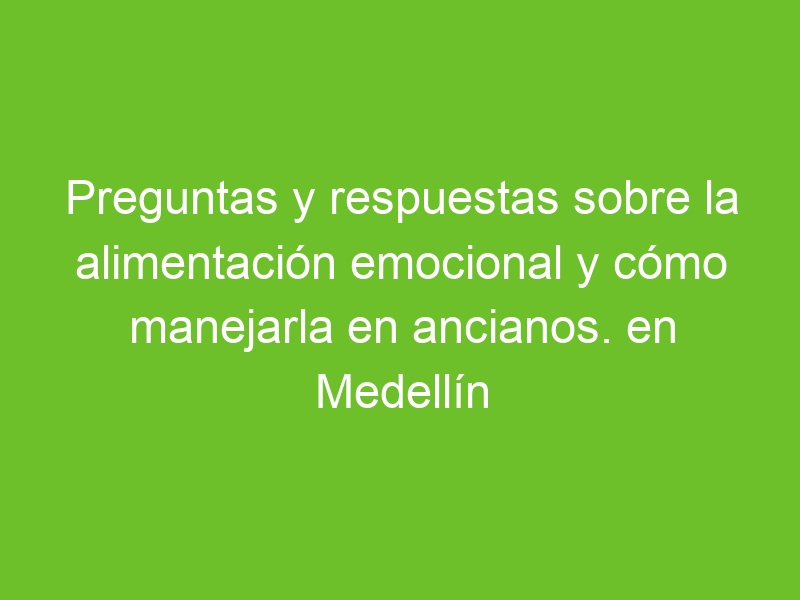 Preguntas y respuestas sobre la alimentación emocional y cómo manejarla en ancianos. en Medellín