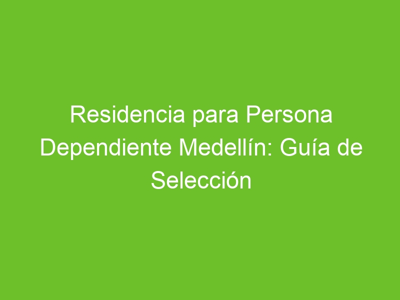 Residencia para Persona Dependiente Medellín: Guía de Selección