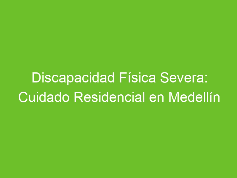 Discapacidad Física Severa: Cuidado Residencial en Medellín